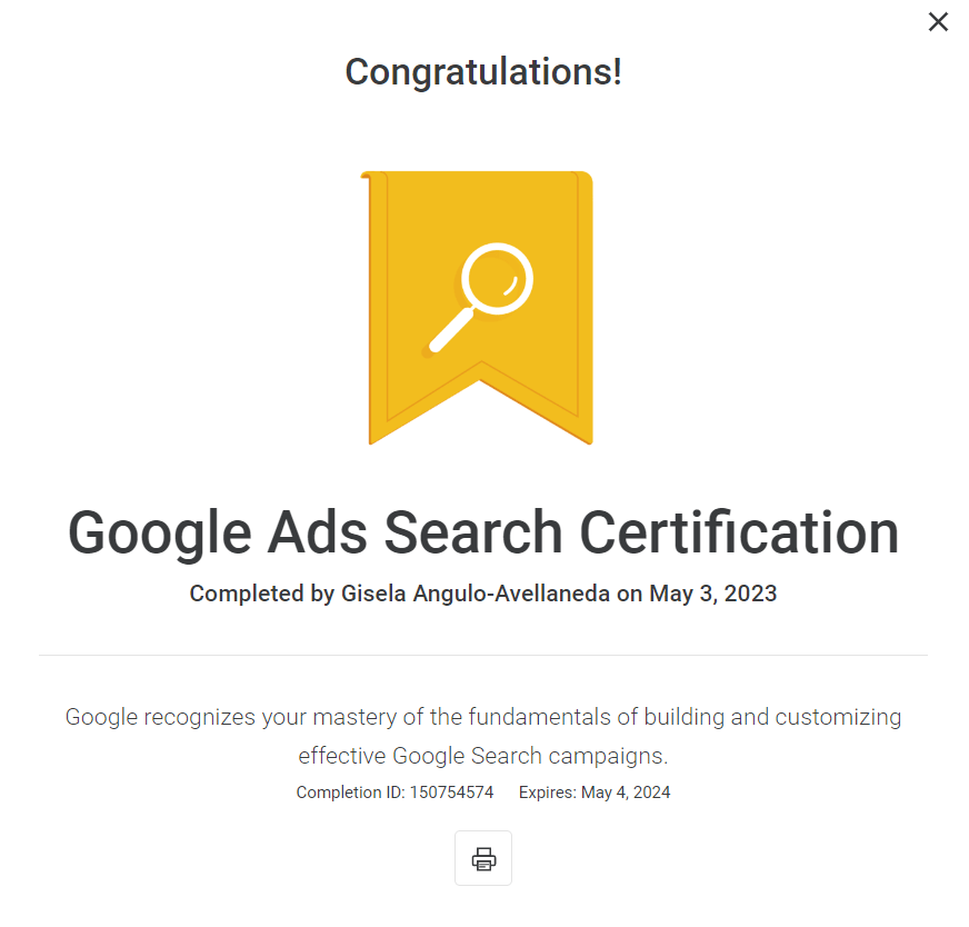 By earning the Google Ads Search Certification, Google recognizes your ability to: